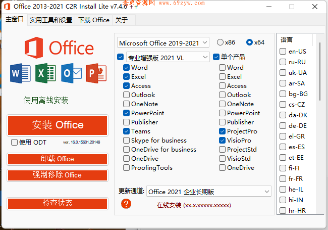 Office 2013-2021 C2R Install是由俄罗斯人Ratiborus制作的Microsoft Office下载、安装、管理的自定义部署工具。它可以在线下载安装 Office 2013-2021 的各个版本,离线安装部署Office镜像,自定义安装Office产品组件,支持Office零售版转换批量许可版,在线KMS激活Office,可选内置Office密钥许可证安装。