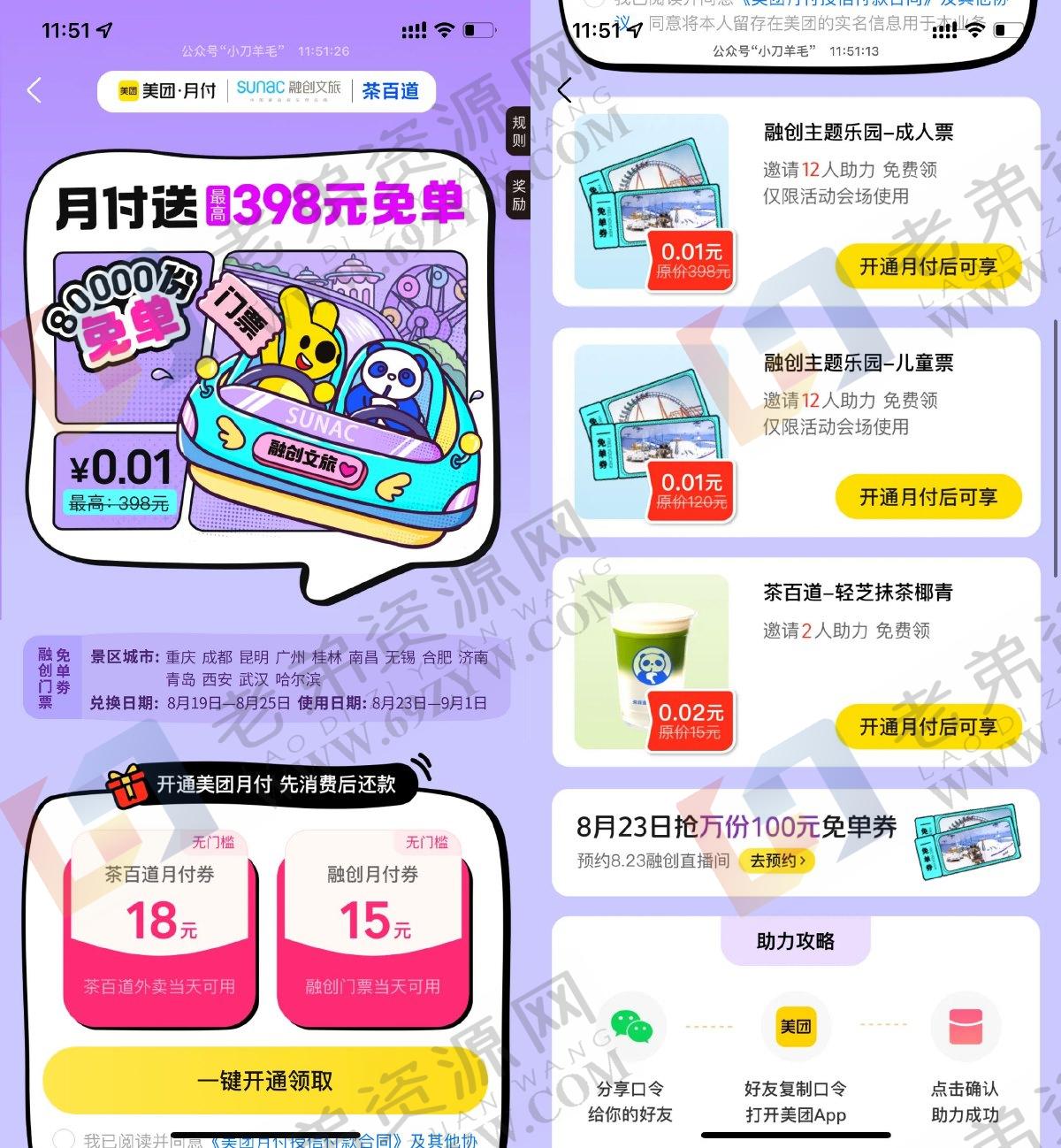美团APP搜索“月付大牌免单”->首次开月付可得茶百道18元外卖券->下拉邀请2人助力领茶百道轻芝抹茶椰青免单