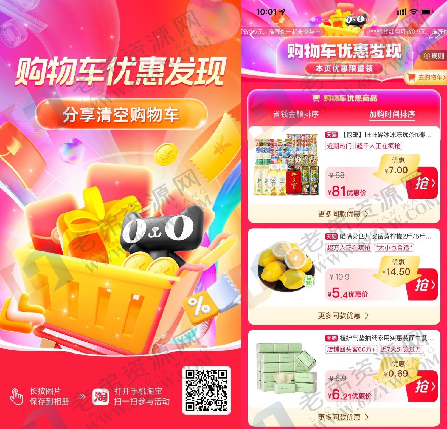 淘宝把想买的东西先加入购物车,然后搜索【每日购物车】进入,即可领取优惠劵+0.5元红包